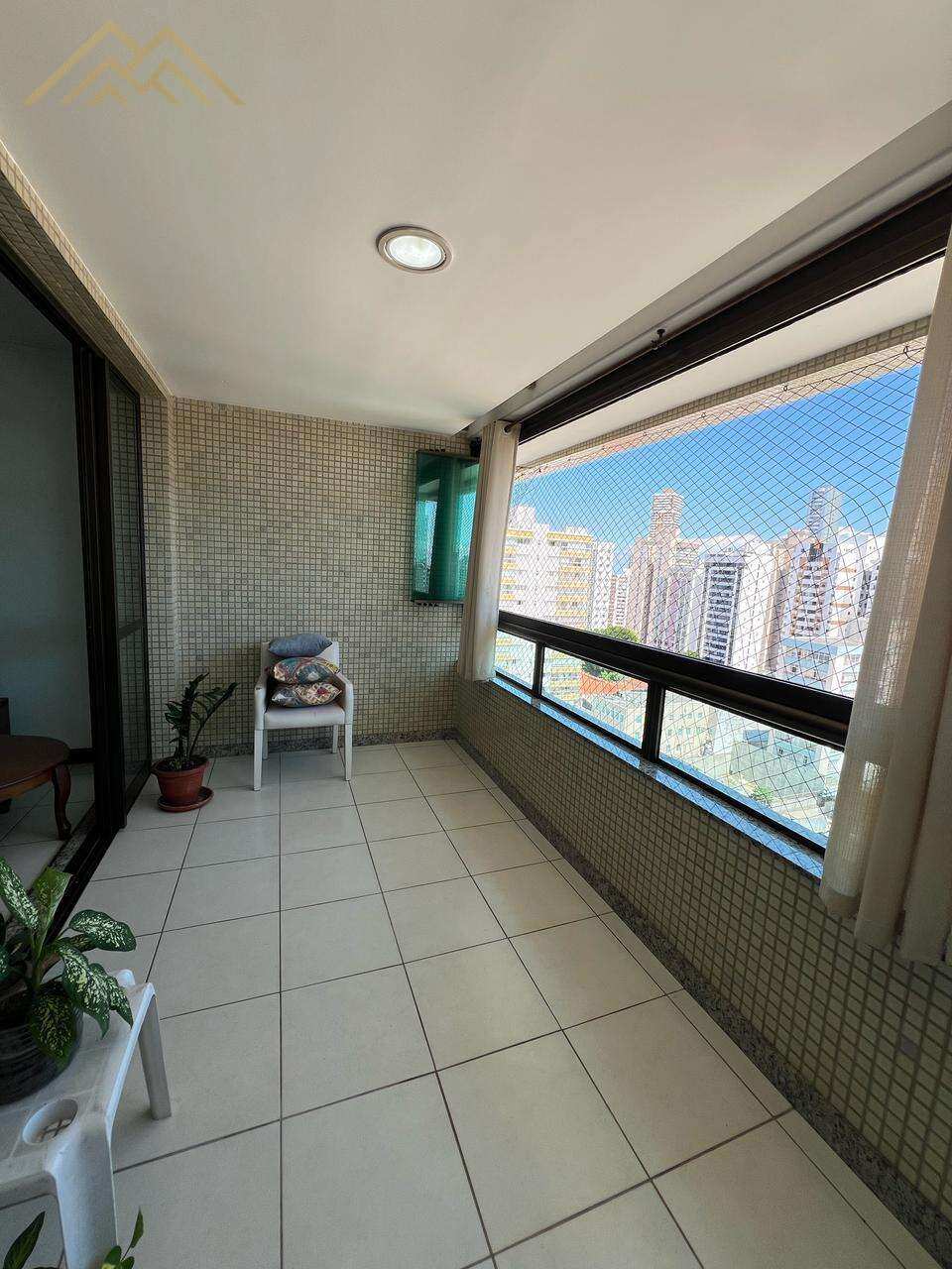 andar alto, ventilado, sala ampla com espelho e ar condicionado, lavabo, varanda com Reiki, 1 suíte com varanda e 2 suítes tipo canadense, cozinha com armários, área de serviço e dependência completa, Ar condicionado e armários nos quartos
