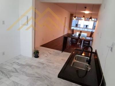 Cozinha, área de serviço e parte da suíte com piso em mármore