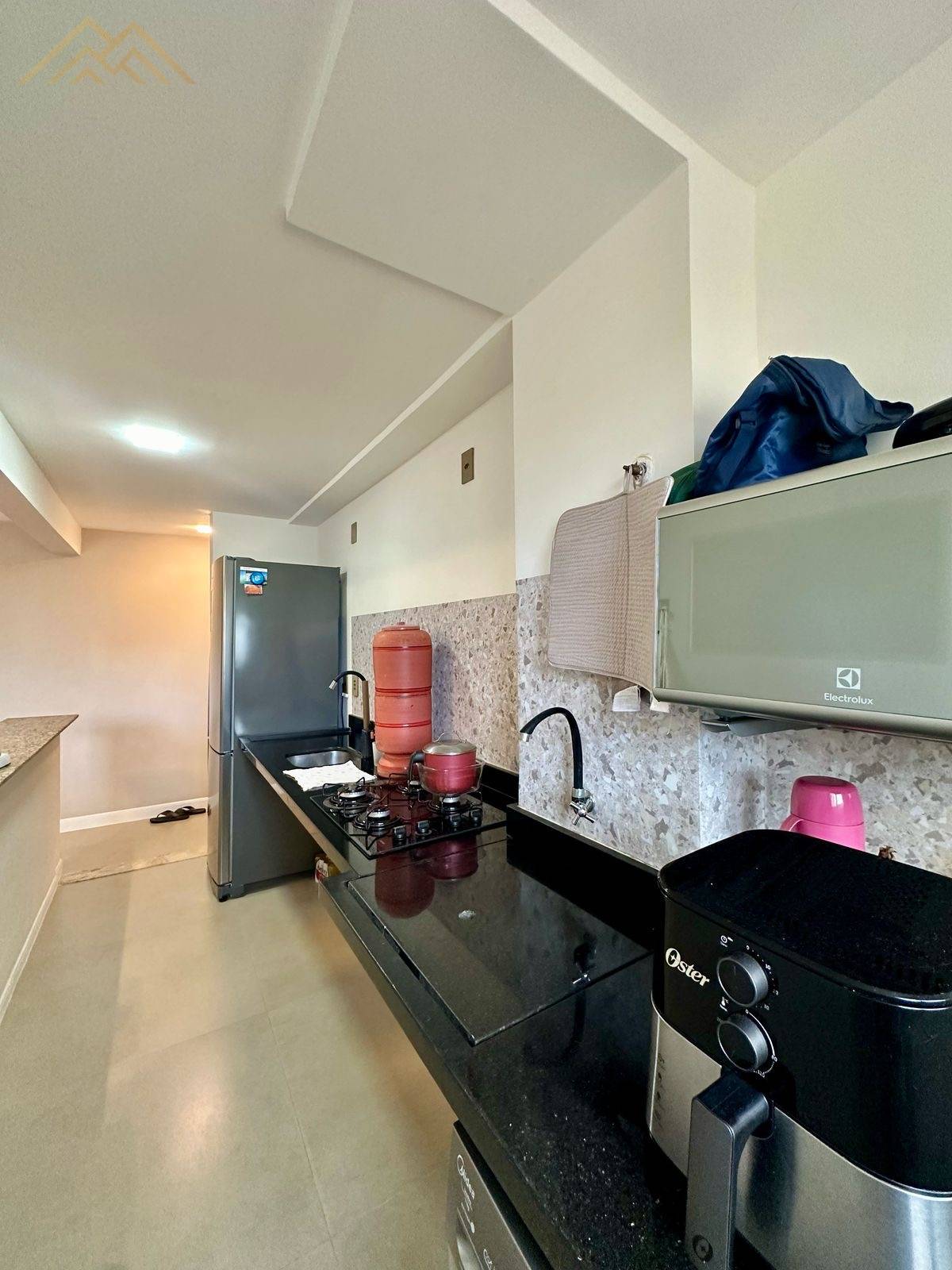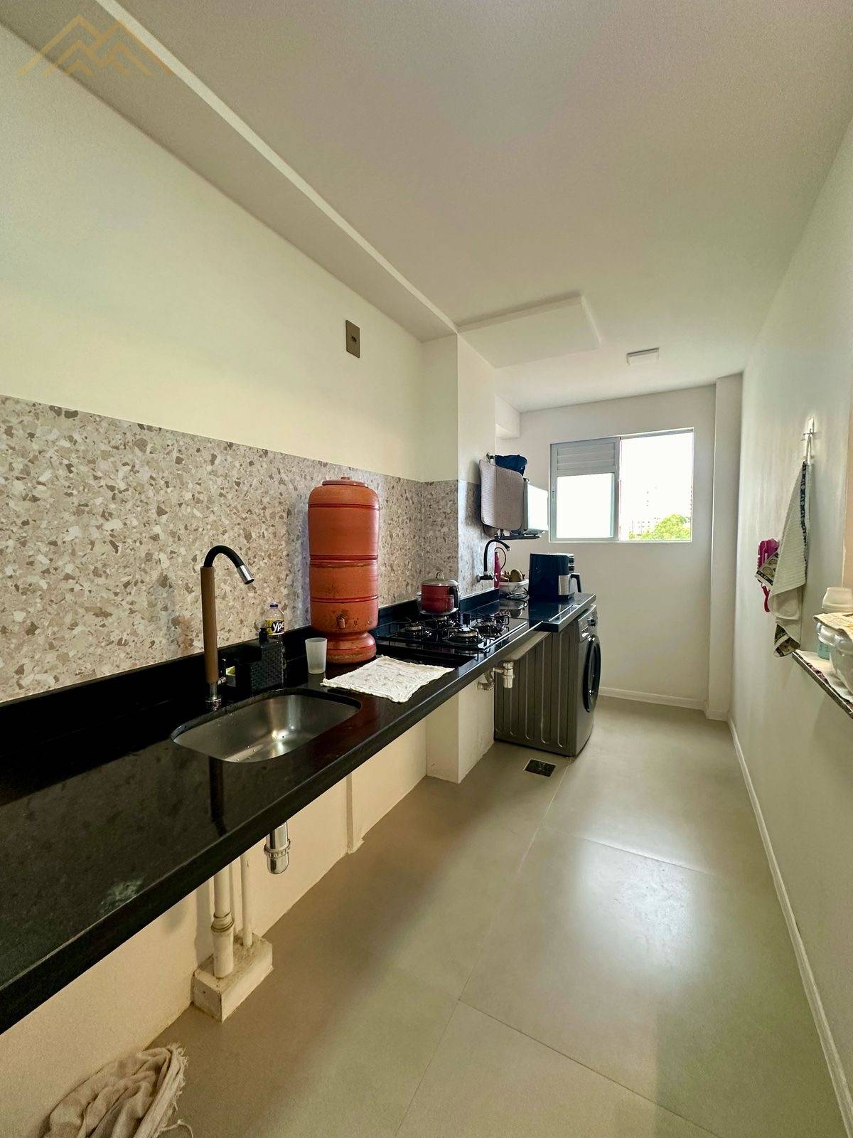 Bancada de mármore com Cooktop e pia e tanque em aço inox;
