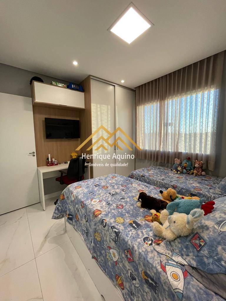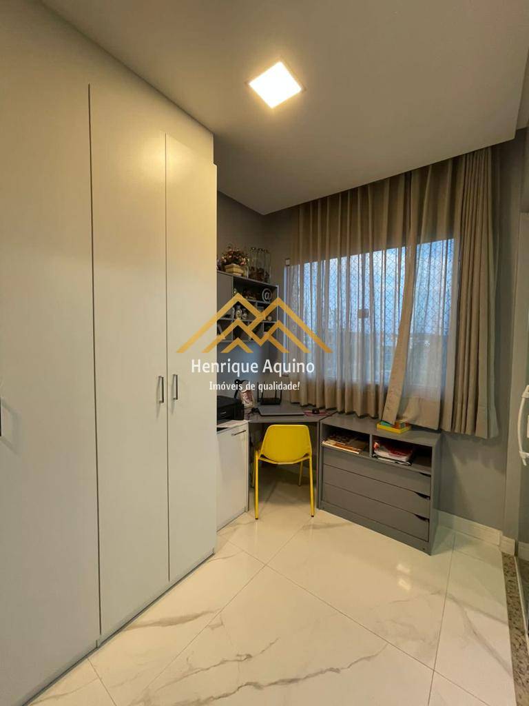 Quartos com armários planejados e piso da sala e dos quartos em porcelanato tipo A e rodapés em Santa Luzia.